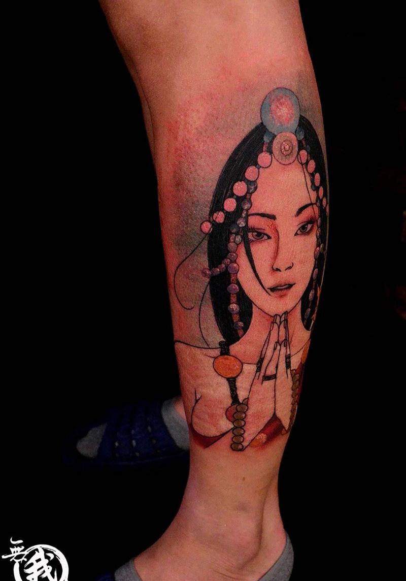 当前位置: 首页 >广东省广州市纹身店-广州纹身無我刺青tattoo纹身图案>彩色作品纹身图片_欧美写实传统肖像成品手稿插画腿部脚部人物纹身图案
