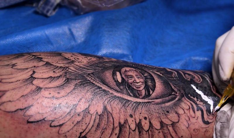 当前位置: 首页 >广东省广州市纹身店-广州纹身無我刺青tattoo纹身图案>欧美作品纹身图片_成品手稿插画腿部脚部欧美写实肖像人物纹身图案