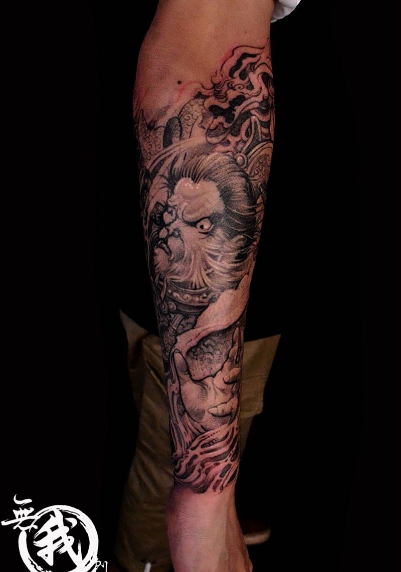 当前位置: 首页 >广东省广州市纹身店-广州纹身無我刺青tattoo纹身图案>包小臂作品纹身图片_成品手稿手部手臂传统国画清新人物鬼神动物纹身图案