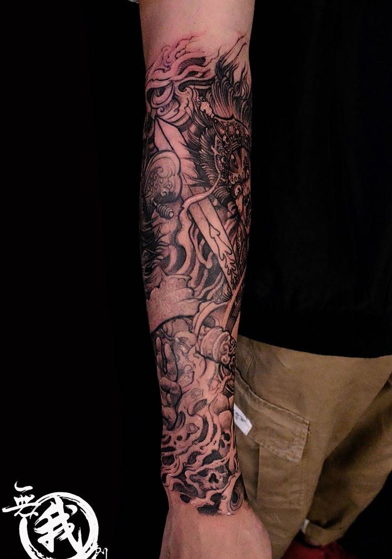 当前位置: 首页 >广东省广州市纹身店-广州纹身無我刺青tattoo纹身图案>包小臂作品纹身图片_成品手稿手部手臂传统国画清新人物鬼神动物纹身图案