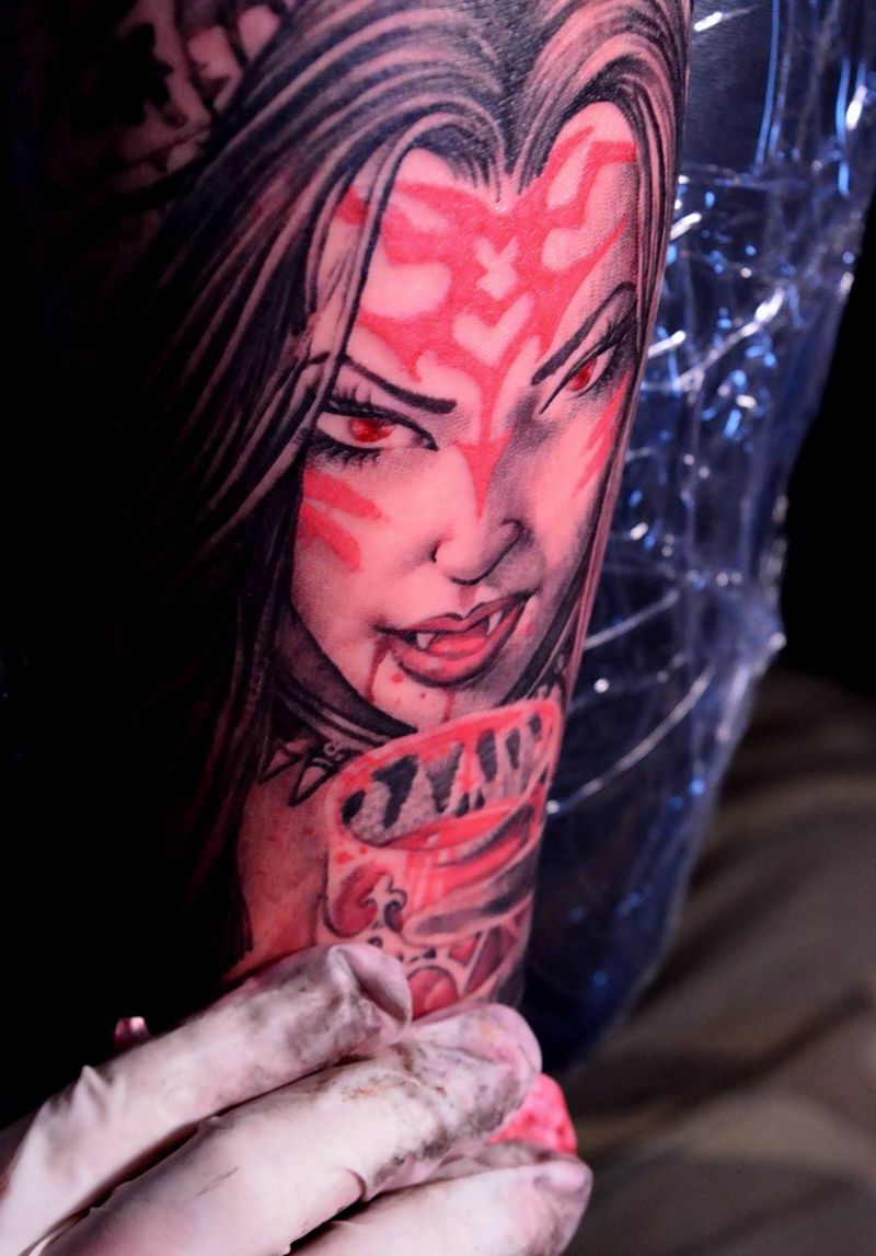 当前位置: 首页 >广东省广州市纹身店-广州纹身無我刺青tattoo纹身图案>吸血鬼时钟包小臂纹身图片_成品手稿插画手部手臂欧美肖像写实人物鬼神纹身图案