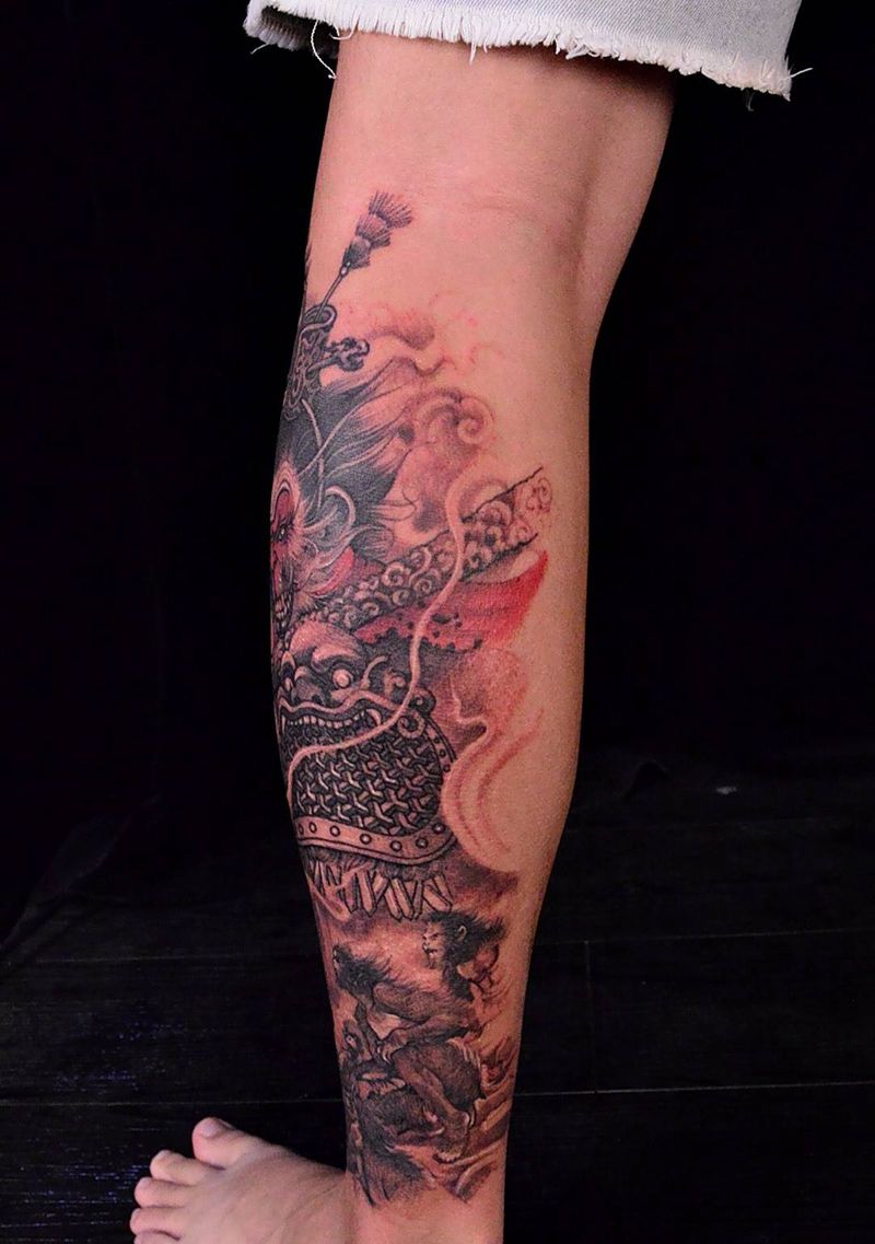 猴王纹身图片_成品手稿插画腿部脚部人物原创鬼神动物传统纹身图案