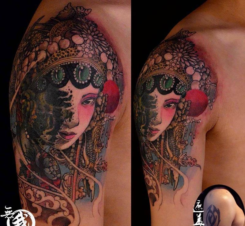 • 纹身吧推荐的披肩图腾半胛纹身图案作品展示