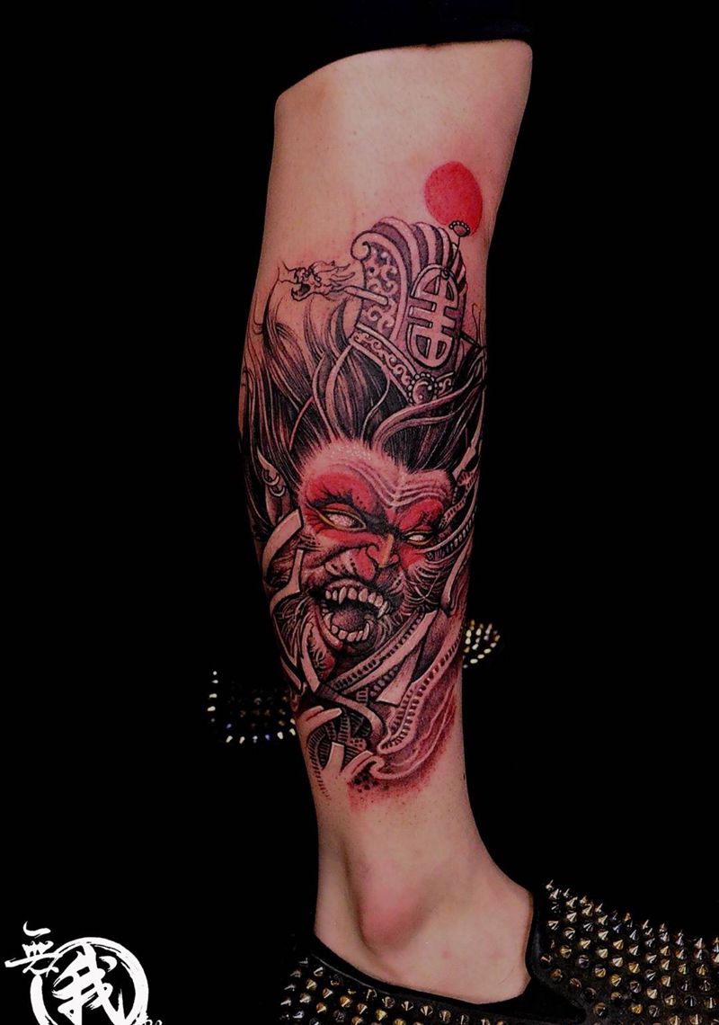 当前位置: 首页 >广东省广州市纹身店-广州纹身無我刺青tattoo纹身图案>孙悟空纹身图片_成品手稿腿部脚部人物原创纹身图案
