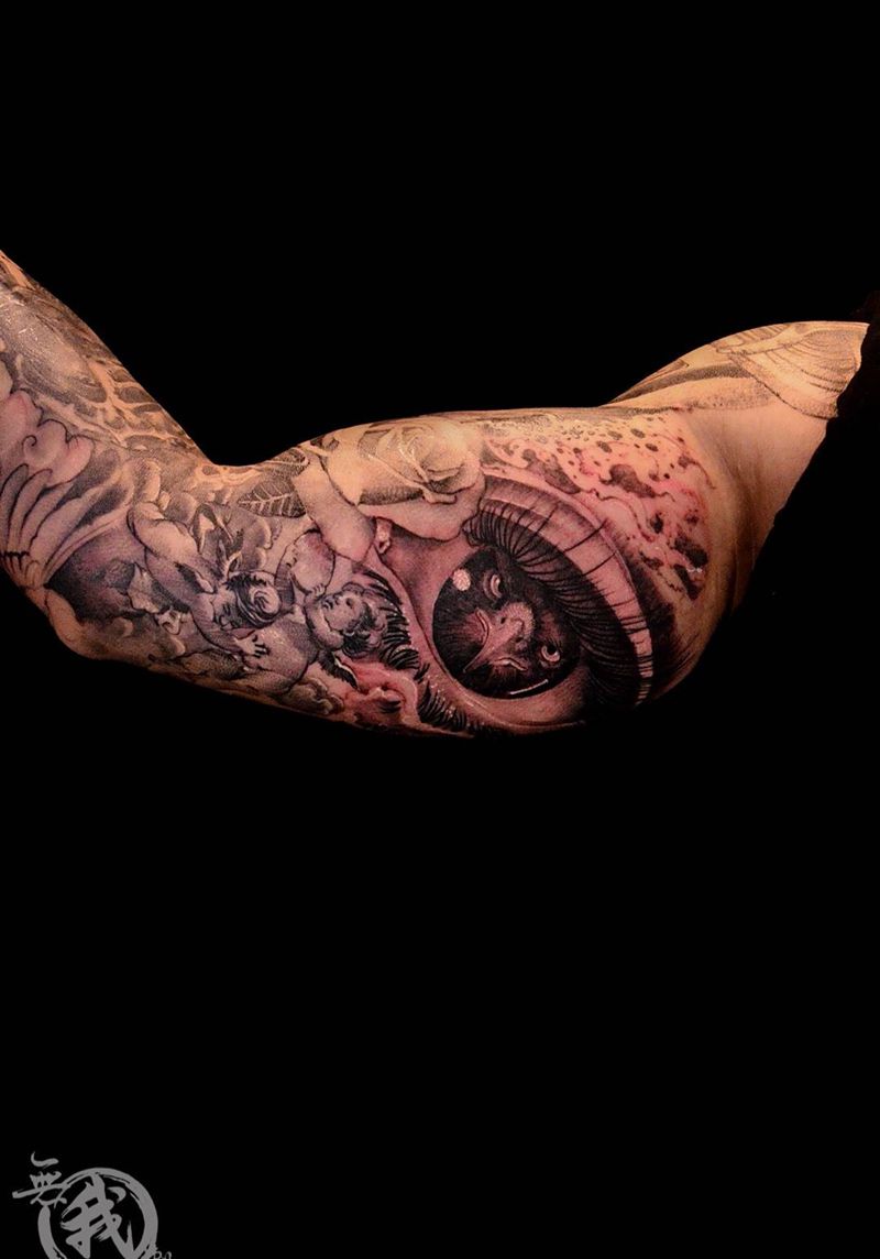 当前位置: 首页 >广东省广州市纹身店-广州纹身無我刺青tattoo纹身图案>欧美花臂纹身图片_成品手稿手部手臂欧美写实人物原创字符动物纹身图案