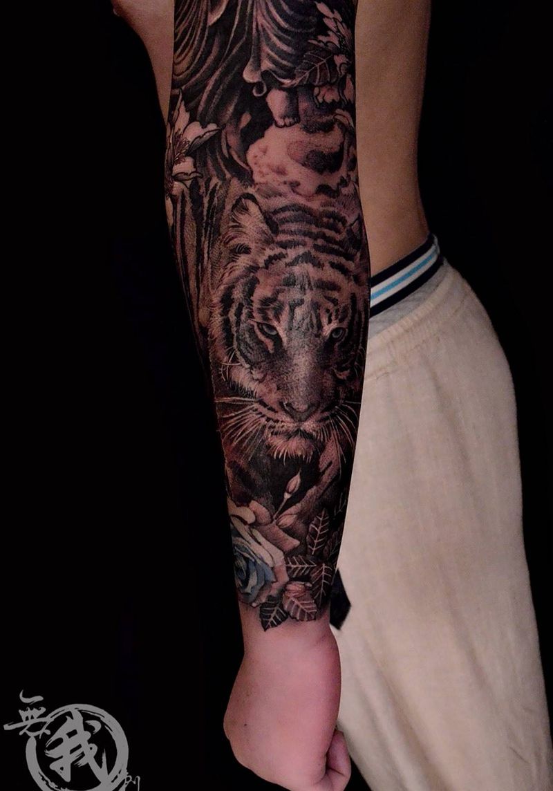 当前位置: 首页 >广东省广州市纹身店-广州纹身無我刺青tattoo纹身图案>花臂纹身图片_成品手稿手臂欧美写实肖像人物宗教动物原创纹身图案