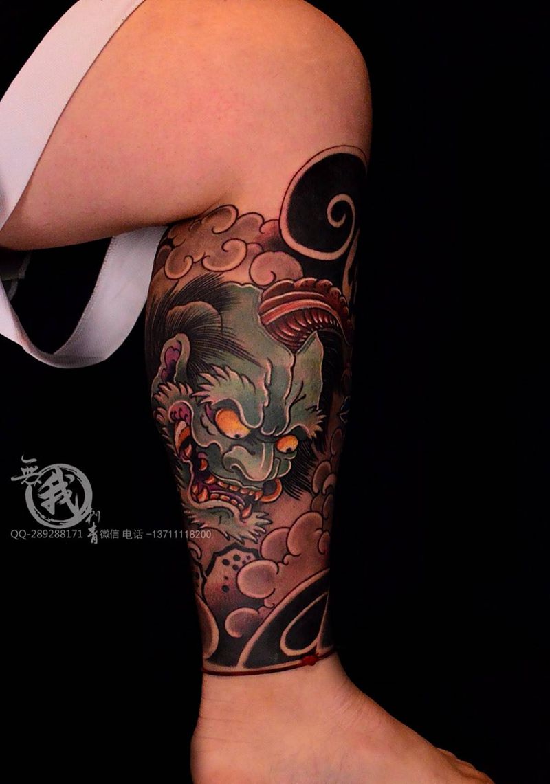 • T网红王老大花腿龙纹身图片_腿部新传统纹身图案