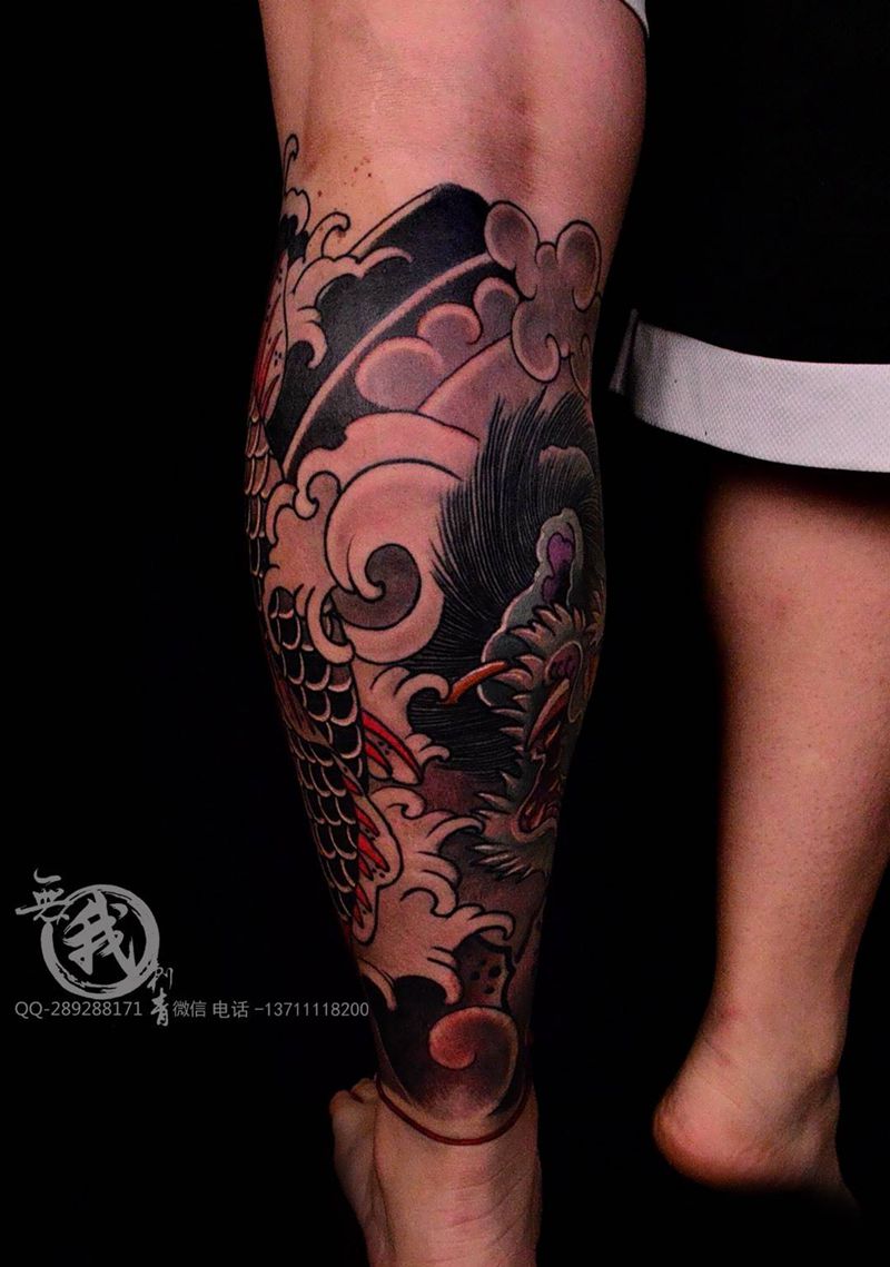 • T网红王老大花腿龙纹身图片_腿部新传统纹身图案