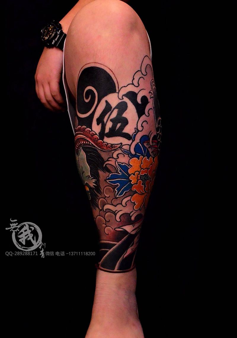 • T网红王老大花腿龙纹身图片_腿部新传统纹身图案