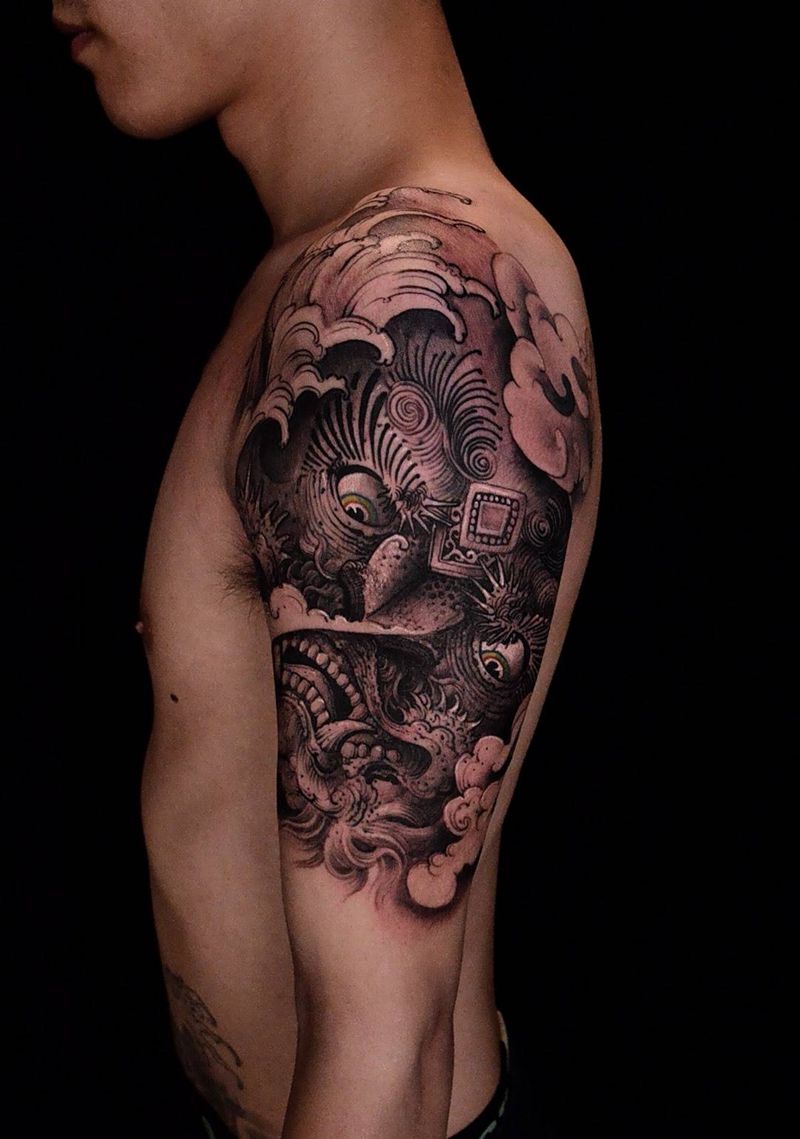 • 纹身吧推荐的披肩图腾半胛纹身图案作品展示