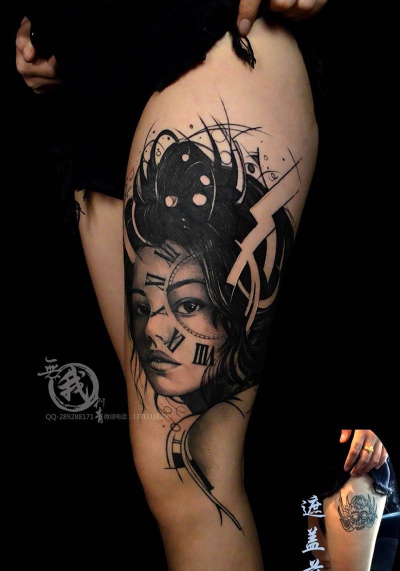 当前位置: 首页 >广东省广州市纹身店-广州纹身無我刺青tattoo纹身图案>遮盖纹身图片_成品手稿腿部欧美写实清新人物几何纹身图案
