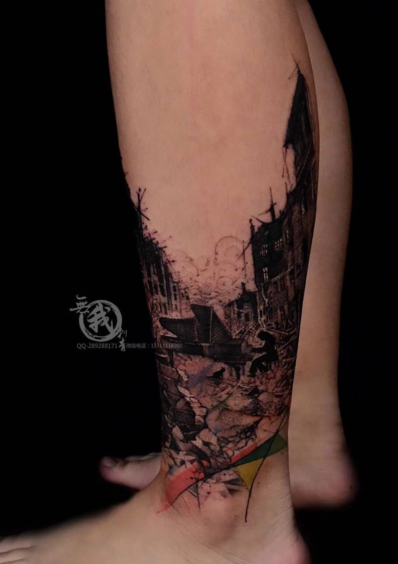 • T包小腿吹火男+阿多福纹身图片_腿部老传统新传统吹火男阿
