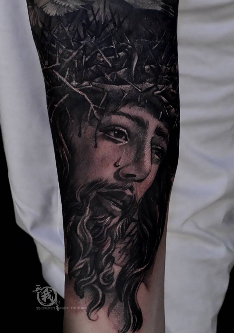 耶稣纹身图片_手臂手部欧美写实耶稣纹身图案