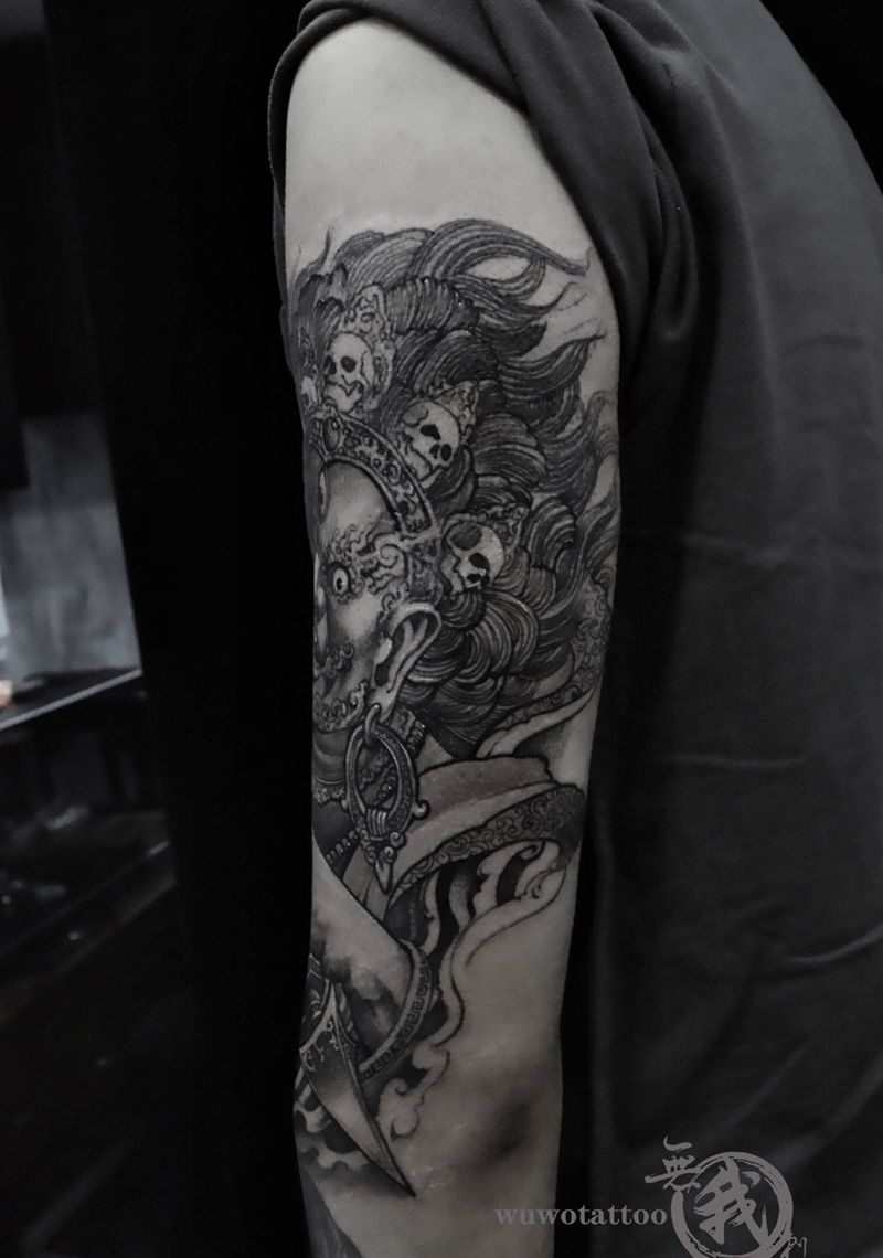 当前位置: 首页 >广东省广州市纹身店-广州纹身無我刺青tattoo纹身图案>大黑天纹身图片_手臂新传统纹身图案