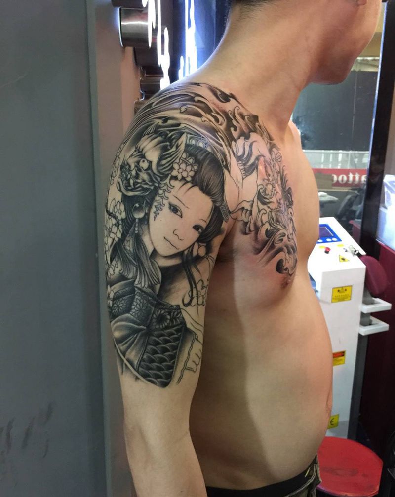 • 纹身吧推荐的披肩图腾半胛纹身图案作品展示