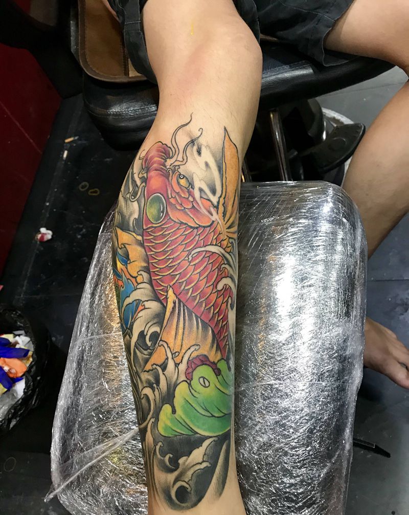 当前位置: 首页 >广东省广州市纹身店-广州红墨坊纹艺纹身图案>鲤鱼纹身图片_腿部纹身图案