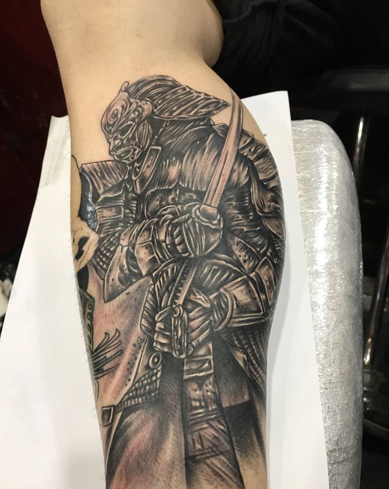 当前位置: 首页 >广东省广州市纹身店-广州红墨坊纹艺纹身图案>鬼武士纹身图片_手臂腿部纹身图案