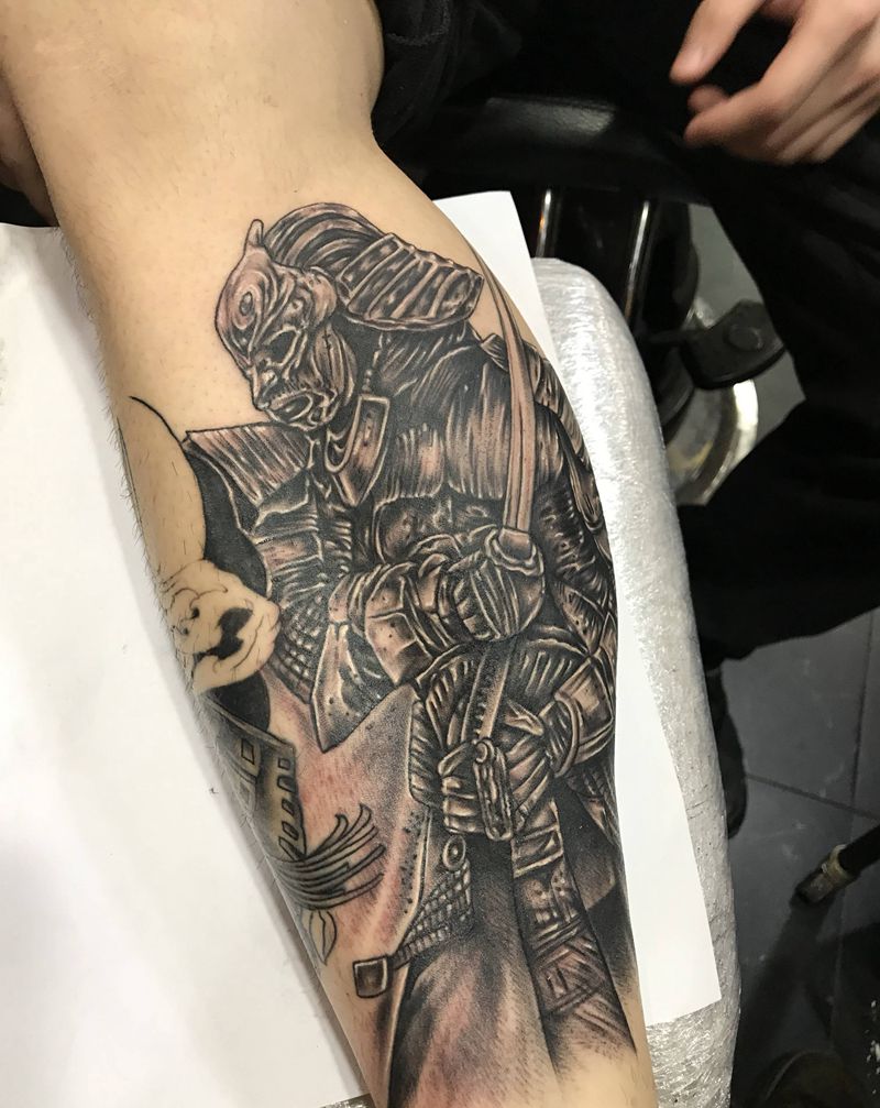 当前位置: 首页 >广东省广州市纹身店-广州红墨坊纹艺纹身图案>鬼武士纹身图片_手臂腿部纹身图案