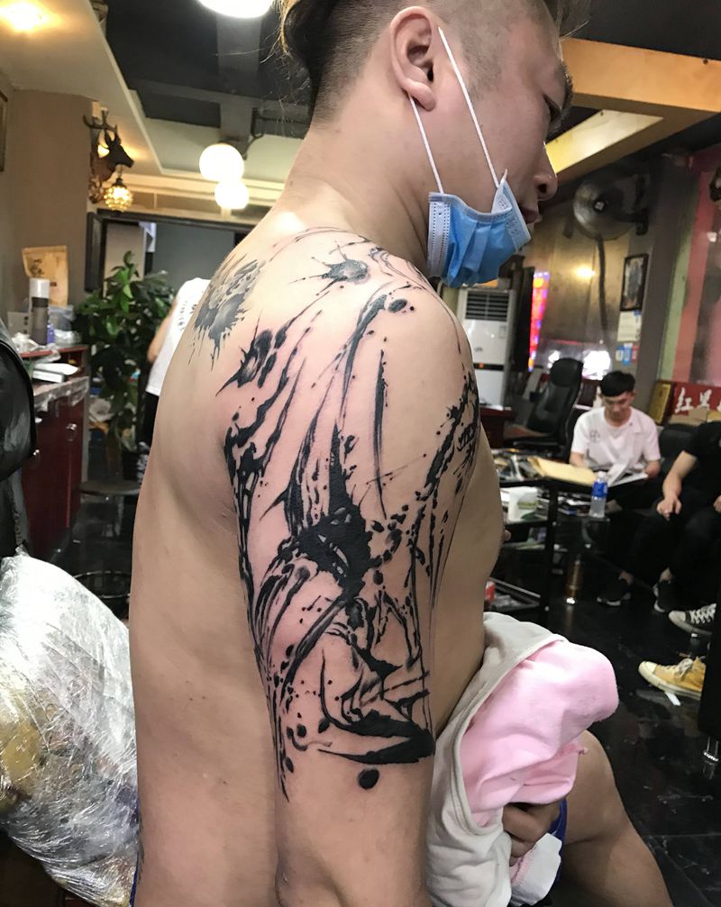 当前位置: 首页 >广东省广州市纹身店-广州红墨坊纹艺纹身图案>水墨纹身图片_手臂胸部纹身图案
