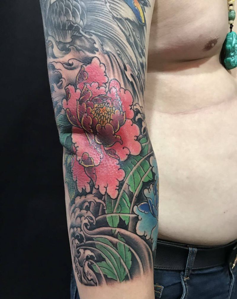 当前位置: 首页 >广东省广州市纹身店-广州红墨坊纹艺纹身图案>牡丹纹身图片_肩部手臂新传统纹身图案