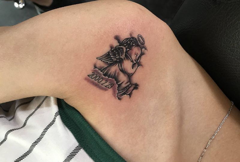 当前位置: 首页 >广东省广州市纹身店-广州红墨坊纹艺纹身图案>小天使纹身图片_肩部纹身图案