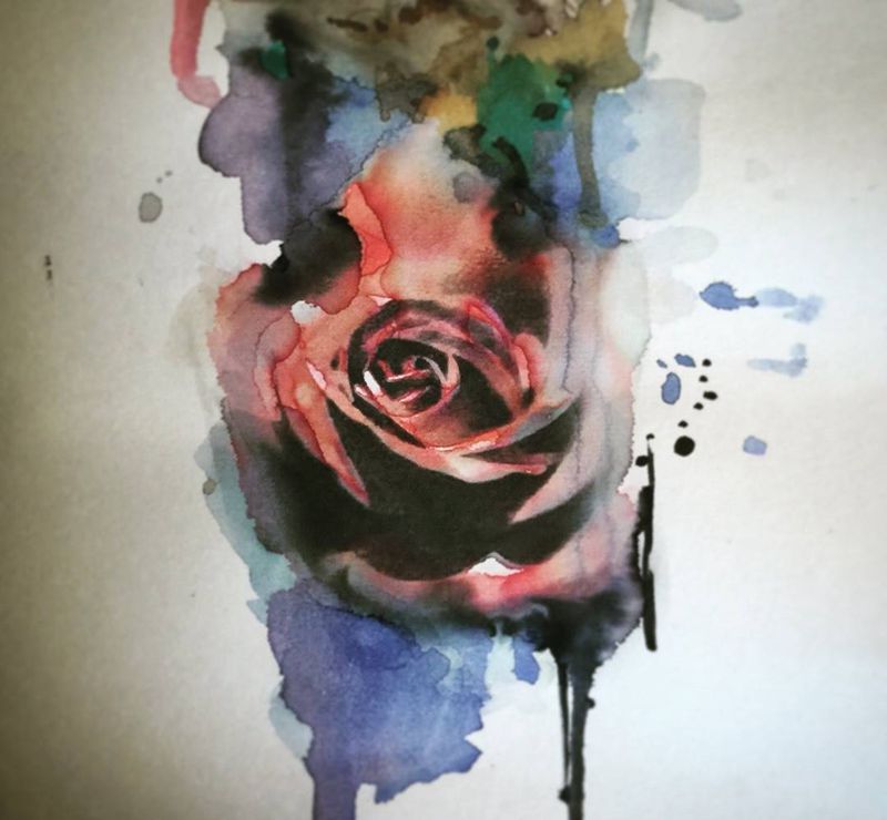 • 手背潮流时尚的玫瑰花眼睛纹身图案