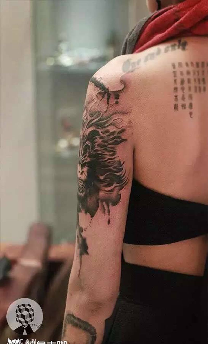 黑灰满背纹身图案