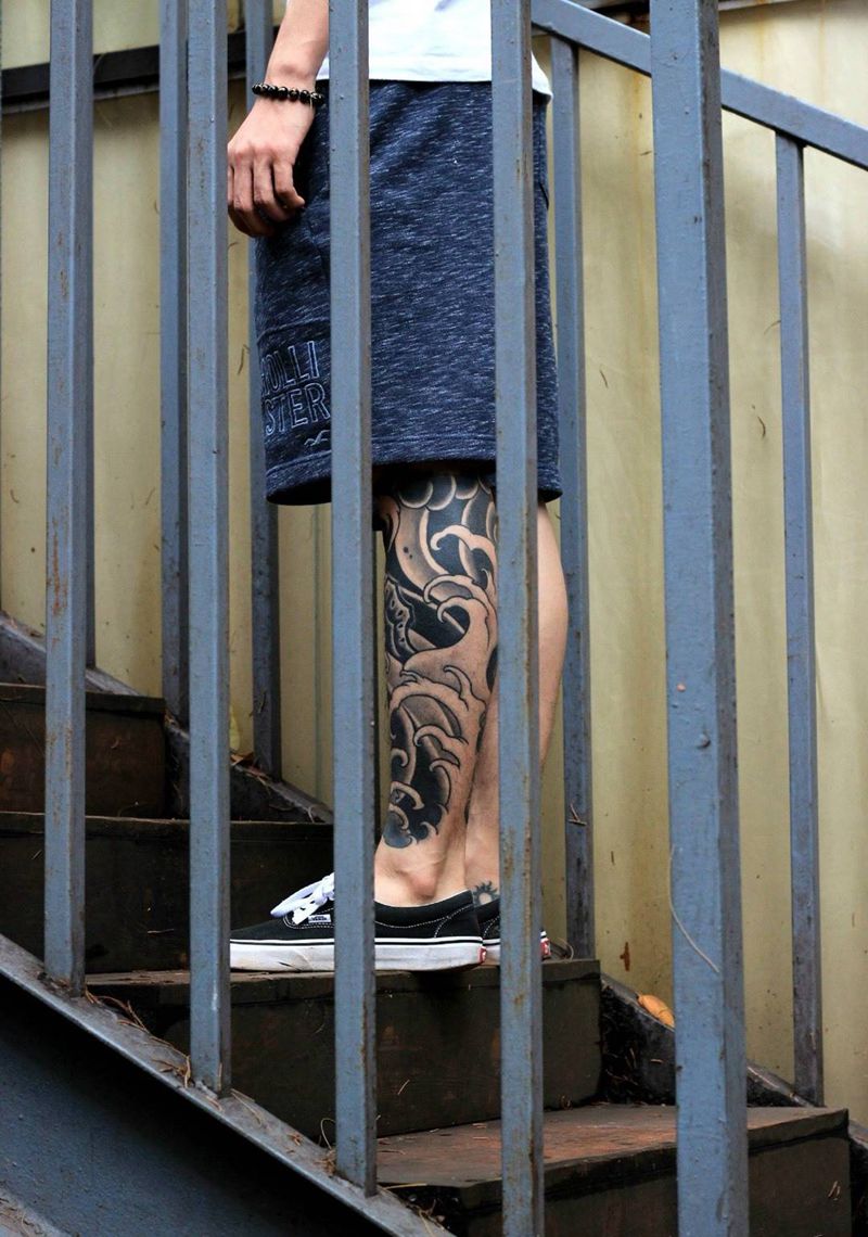 • T网红王老大花腿龙纹身图片_腿部新传统纹身图案
