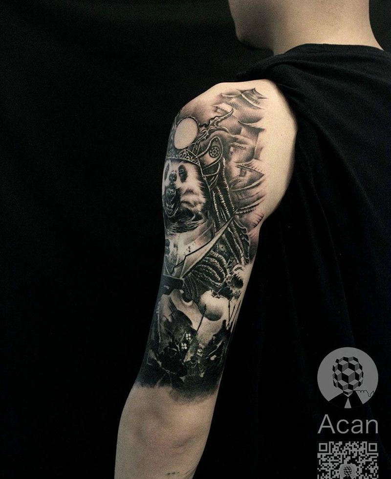 黑灰满背纹身图案