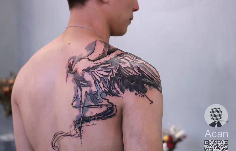 鹤纹身图片_成品肩部背部原创纹身图案
