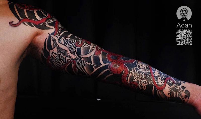 插画风包臂,未完成纹身图片_成品手臂原创纹身图案