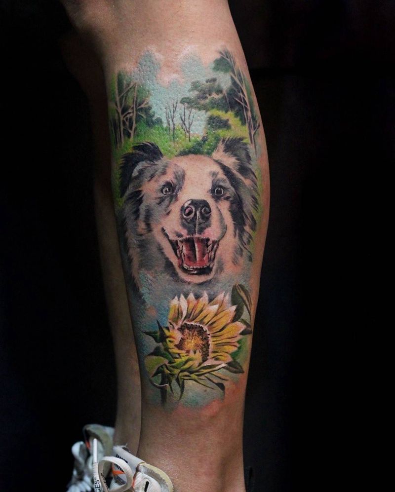 • T网红王老大花腿龙纹身图片_腿部新传统纹身图案
