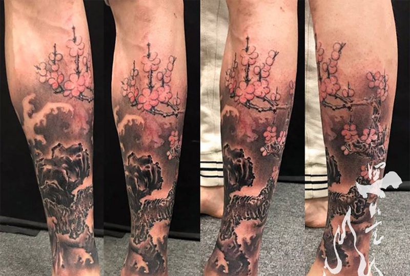 当前位置: 首页 >广东省广州市纹身店-黑火堂纹身纹身图案>梅花纹身图片_成品脚部腿部传统国画植物原创宗教遮盖习俗纹身图案