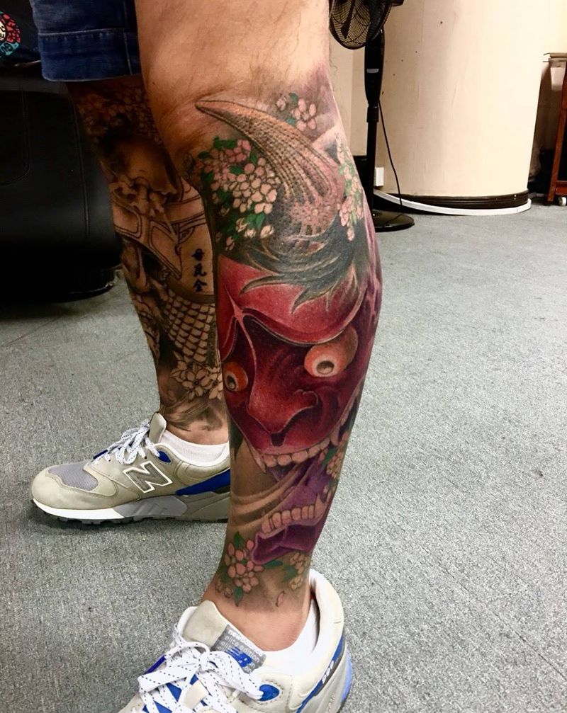 • T网红王老大花腿龙纹身图片_腿部新传统纹身图案