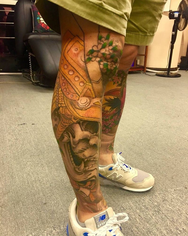 • T网红王老大花腿龙纹身图片_腿部新传统纹身图案