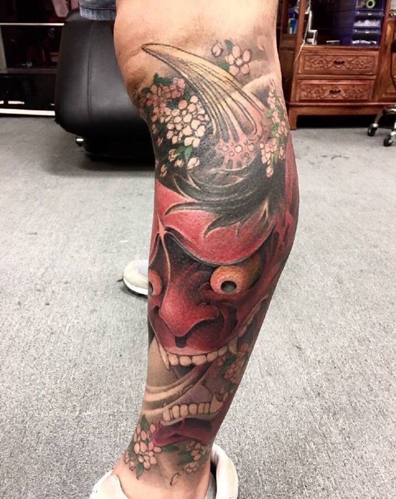 • T网红王老大花腿龙纹身图片_腿部新传统纹身图案