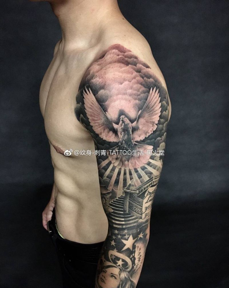 • 纹身吧推荐的披肩图腾半胛纹身图案作品展示
