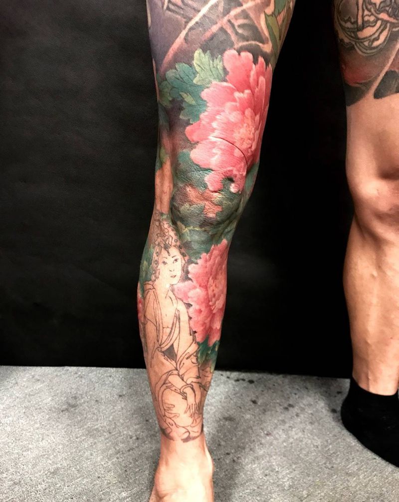• T网红王老大花腿龙纹身图片_腿部新传统纹身图案