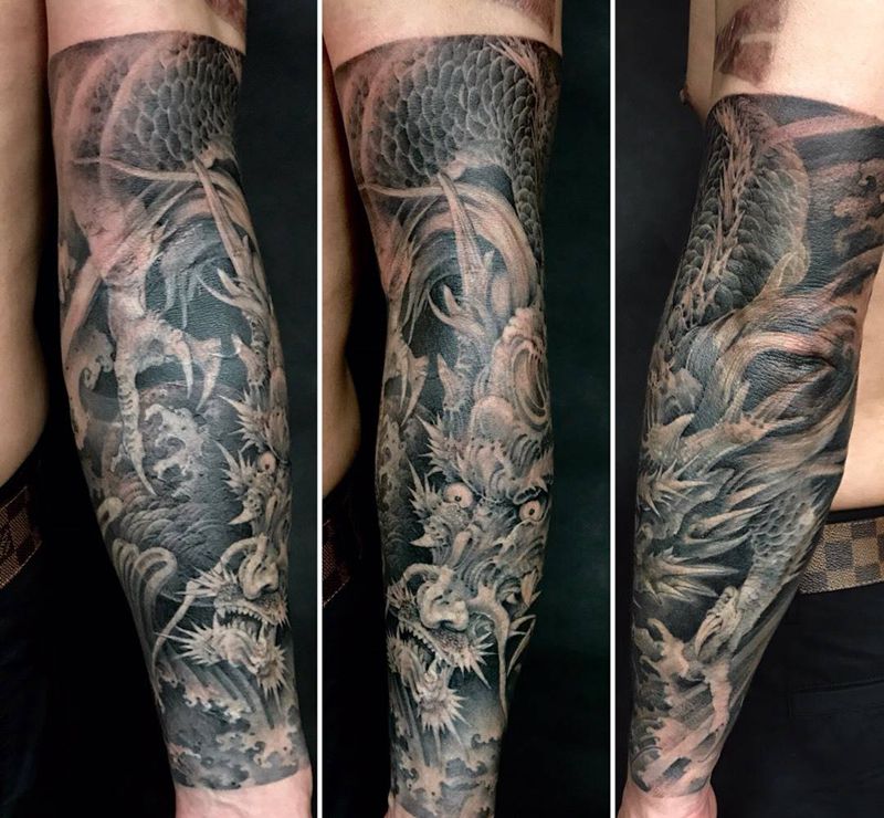 遮盖龙纹身图片_成品传统原创手臂手部国画动物宗教习俗遮盖纹身图案