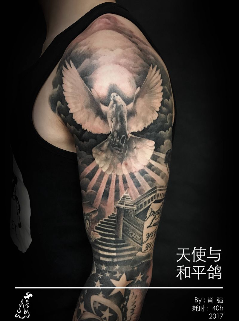 当前位置: 首页 >广东省广州市纹身店-黑火堂纹身纹身图案>天使与和平鸽纹身图片_手臂欧美写实纹身图案