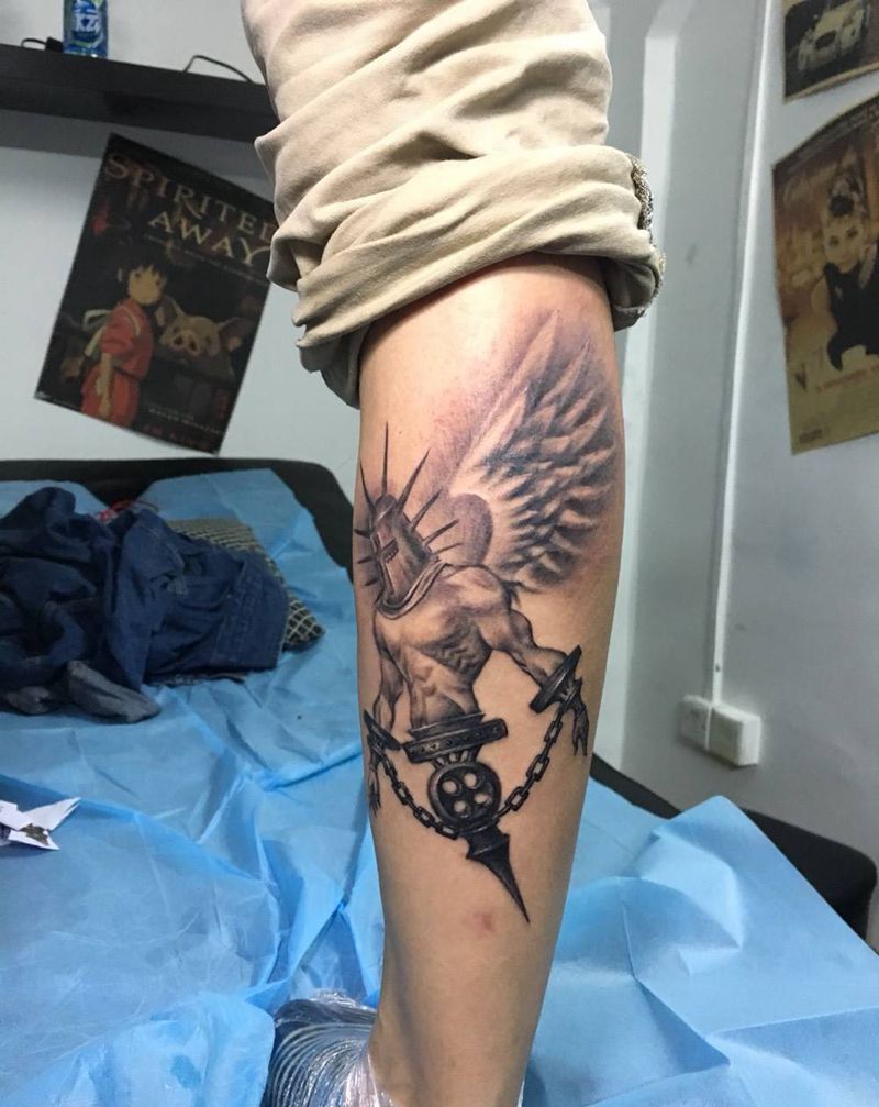 • T包小腿吹火男+阿多福纹身图片_腿部老传统新传统吹火男阿
