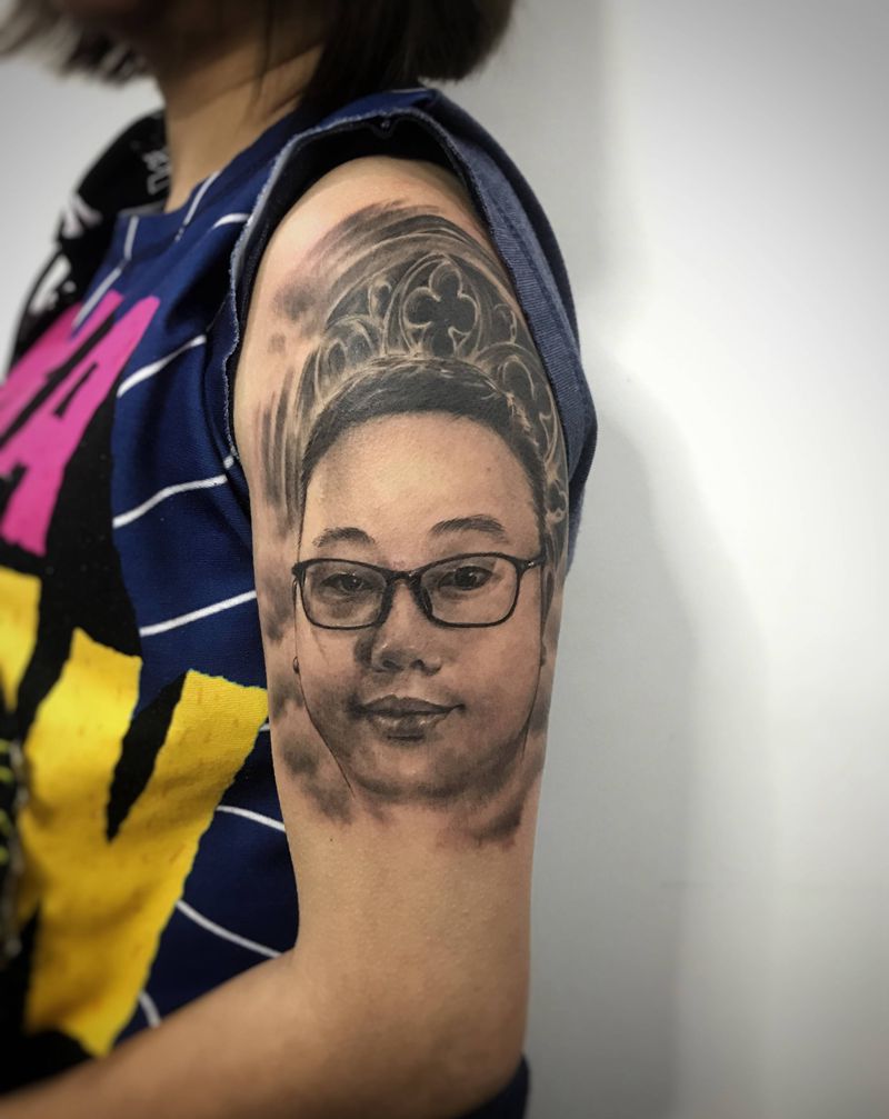 当前位置: 首页 >广东省广州市纹身店-框刺青纹身图案>肖像纹身图片_手臂欧美写实肖像纹身图案