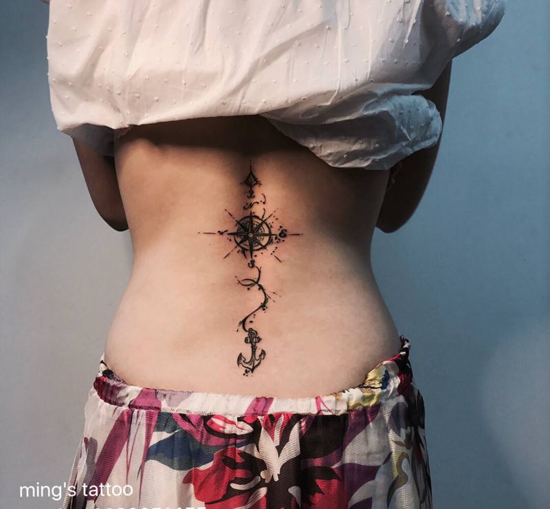 小图纹身图片_背部水墨指南针纹身图案
