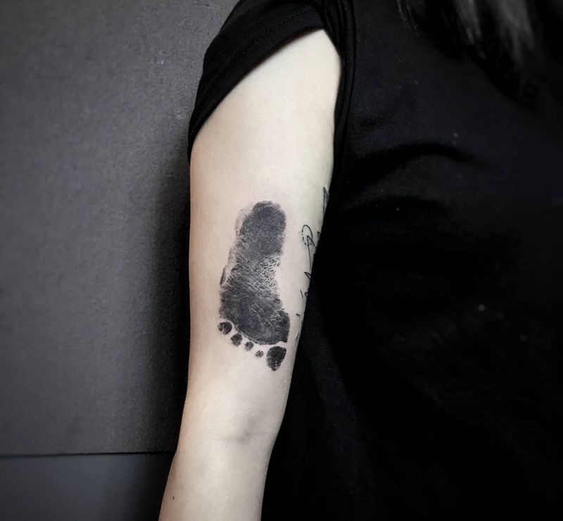 脚印纹身图片_手臂欧美写实脚印纹身图案