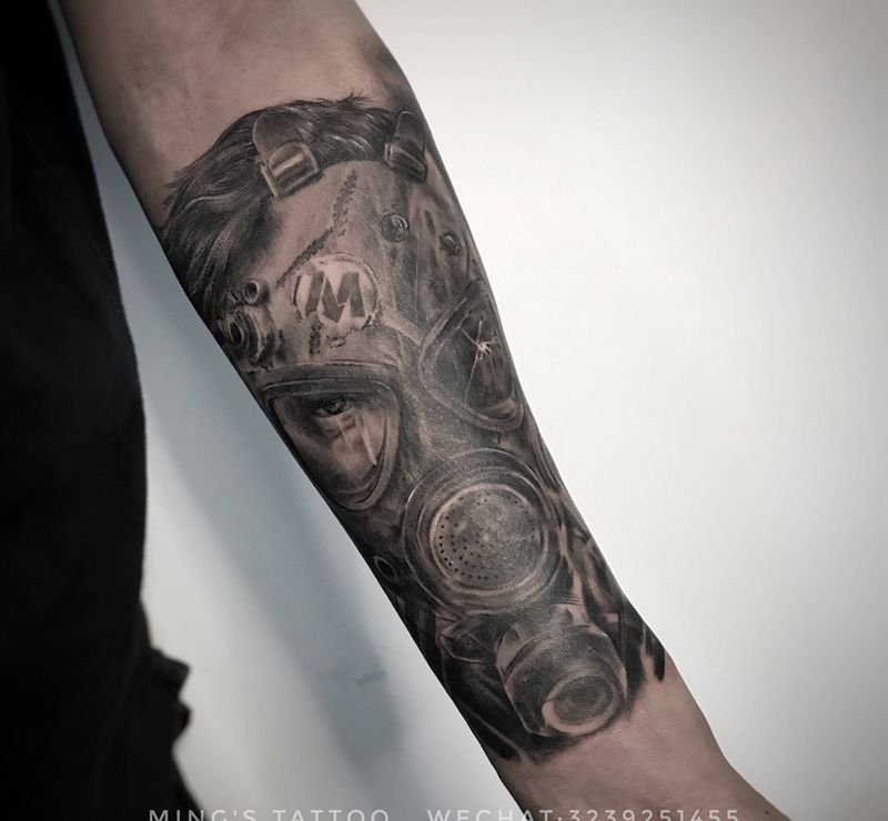 当前位置: 首页 >广东省广州市纹身店-框刺青纹身图案>防毒面具纹身图片_手臂欧美写实防毒面具纹身图案