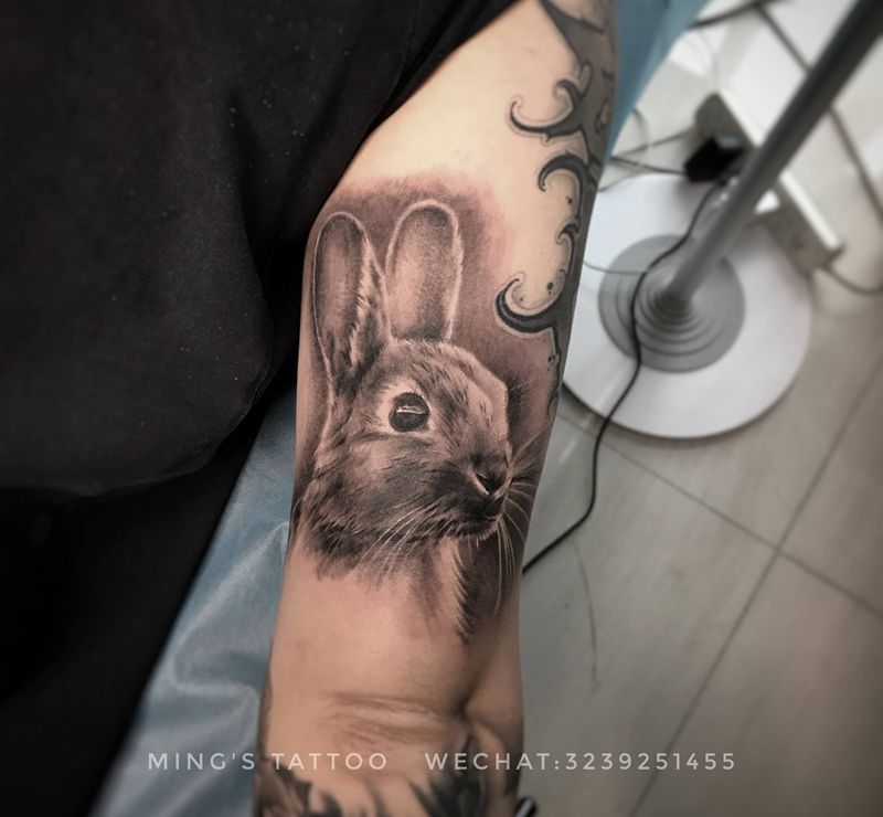当前位置: 首页 >广东省广州市纹身店-框刺青纹身图案>小兔子纹身图片_手臂欧美写实兔子纹身图案