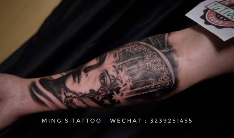 当前位置: 首页 >广东省广州市纹身店-框刺青纹身图案>美女肖像纹身图片_手臂欧美写实肖像楼梯纹身图案