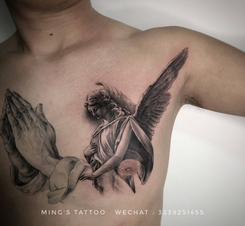当前位置: 首页 >广东省广州市纹身店-框刺青纹身图案>天使纹身图片_胸部欧美写实天使纹身图案