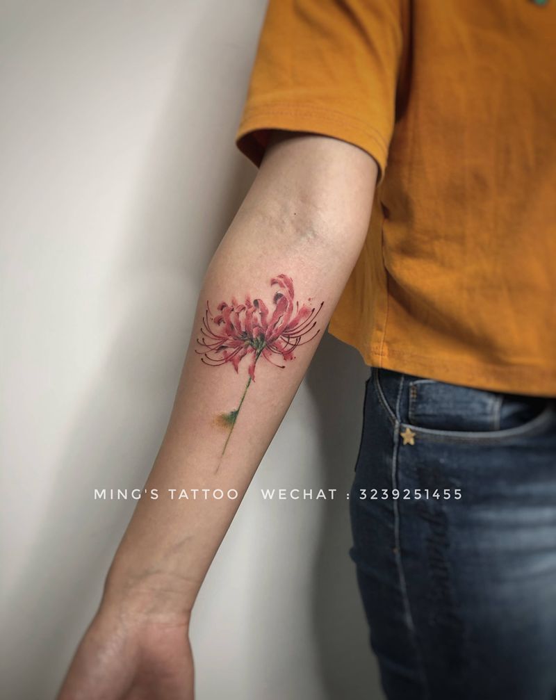 当前位置: 首页 >广东省广州市纹身店-框刺青纹身图案>彼岸花纹身图片_手臂水彩彼岸花曼珠沙华纹身图案