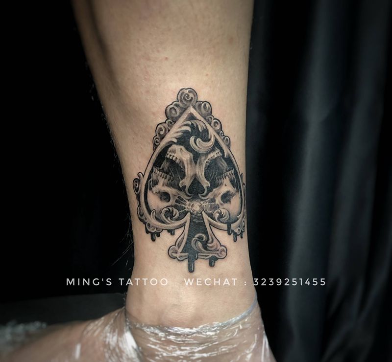 当前位置: 首页 >广东省广州市纹身店-框刺青纹身图案>黑桃纹身图片_腿部点刺黑桃骷髅纹身图案